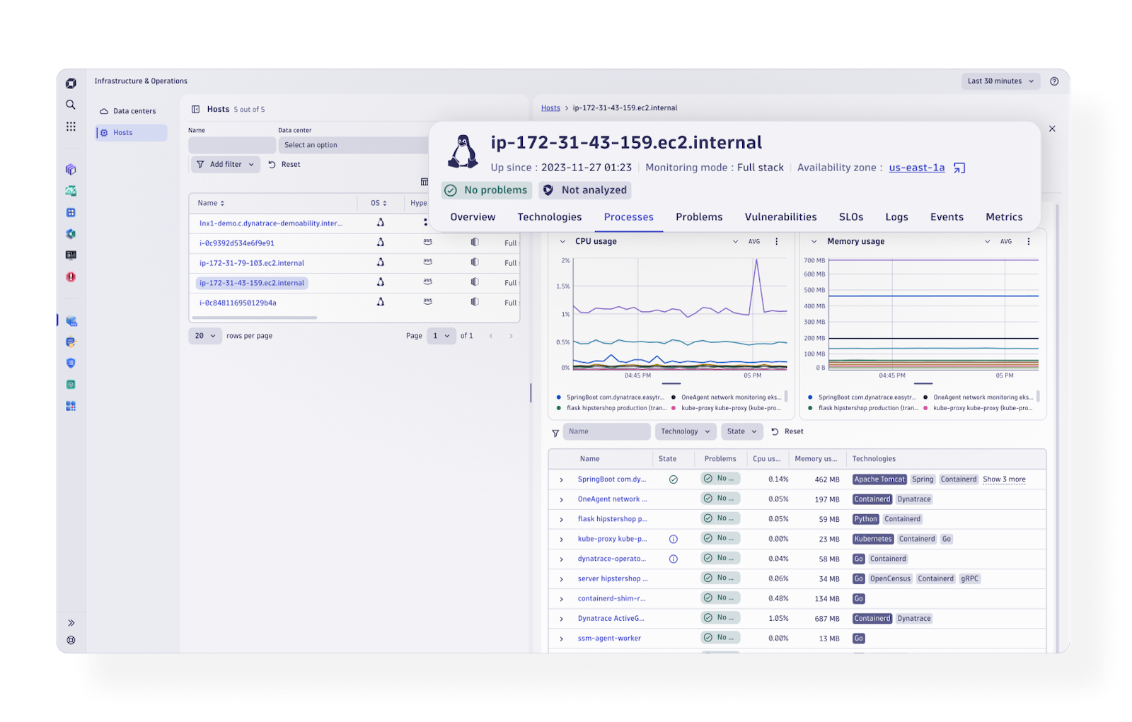 Bulut, hibrit, denetleyiciler, VM'ler, ağ, sunucular, depolama ve daha fazlası dahil olmak üzere tüm altyapınızı otomatik olarak izleyin. PaaS ve AWS, Azure, GCP, Kubernetes, OpenShift ve Cloud Foundry gibi konteyner teknolojilerinde iyileştirilmiş gözlemlenebilirlik, süreç algılama ve kaynak kullanımı, ağ kullanımı ve performansı, günlük izleme, Üçüncü taraf verilerini alın ve olay entegrasyonu.