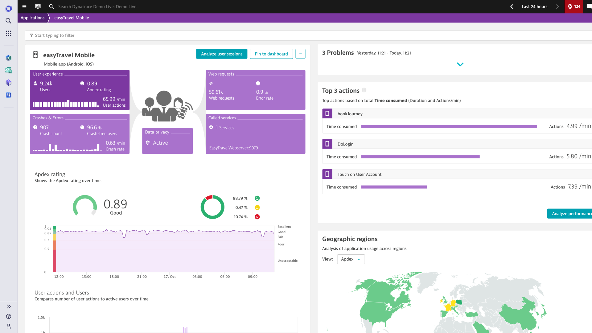 Müşteri beklentilerini aşan yeni mobil özelliklerle daha hızlı yenilik yapmak için müşteri segmentlerindeki mobil kullanıcı deneyimlerini, uygulama çökmelerini, üçüncü taraf bileşenleri ve tüm bulut yığınınızı sürekli olarak izleyin ve analiz edin.