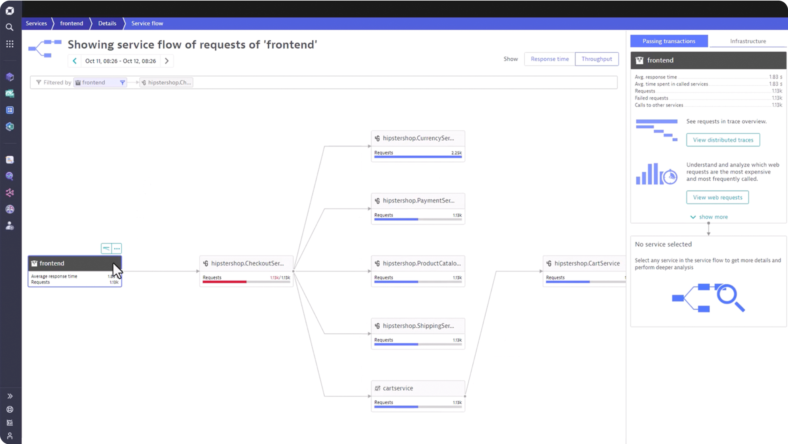 Dynatrace, Kubernetes'teki konteynerlerde çalışan dinamik mikro hizmet iş yüklerini otomatik olarak keşfeder ve izler. Nasıl performans gösterdiklerini, birbirleriyle nasıl iletişim kurduklarını görün ve düşük performanslı mikro hizmetleri anında tespit edin.